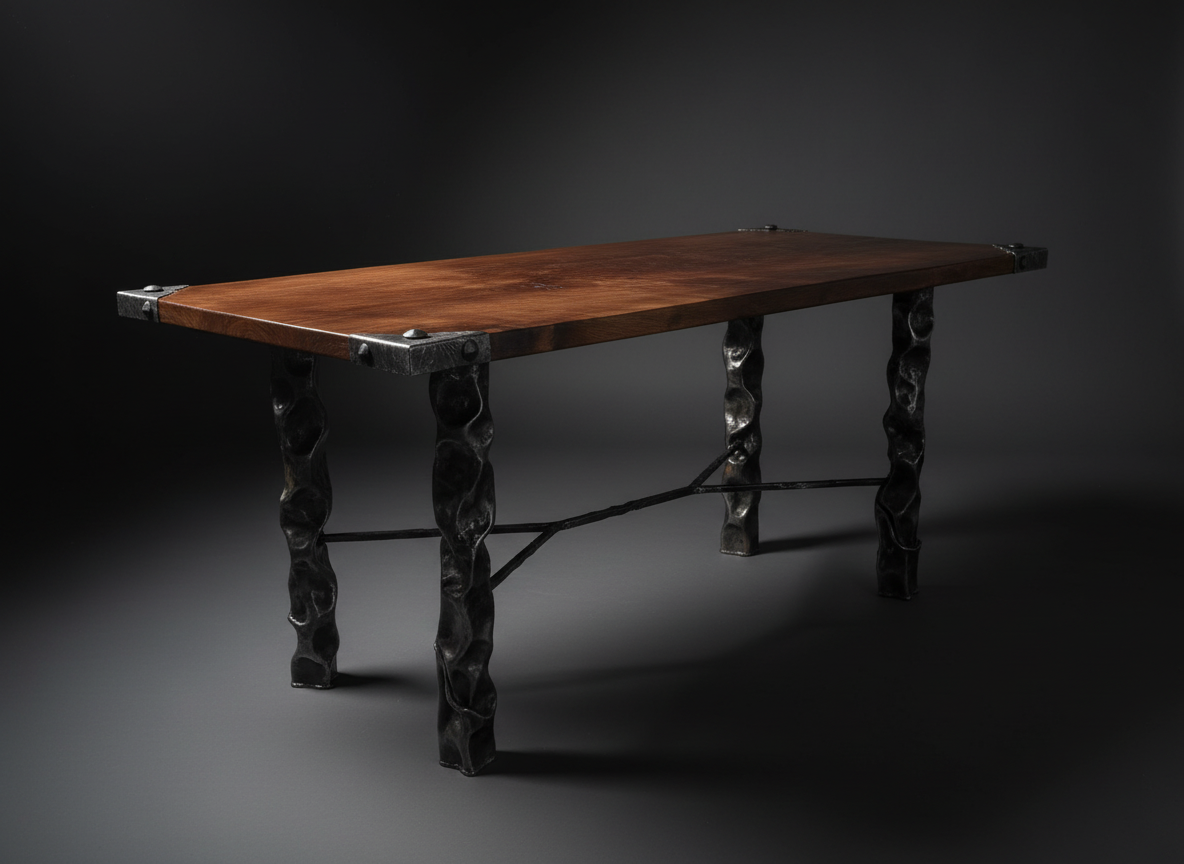 Fiecare piesă de mobilier pe care o realizăm este lucrată manual, folosind fier forjat și lemn masiv. Proiectăm și construim fiecare element cu atenție la durabilitate, autenticitate și caracterul rustic‑industrial.